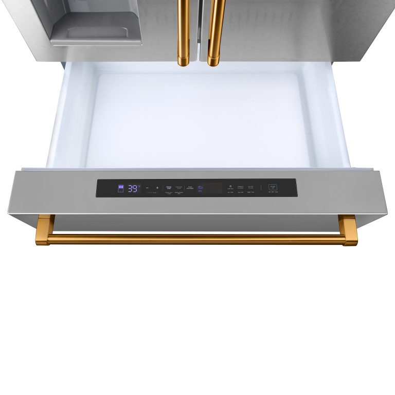 - Spacious French Door Refrigeratorz: The 36-inch refrigerator provides a large 21.6 cu. ft. capacity with a modern French door design. Equipped with ice maker and water dispenser, it features advanced multi-zone cooling and LED lighting for even temperature control and clear visibility.