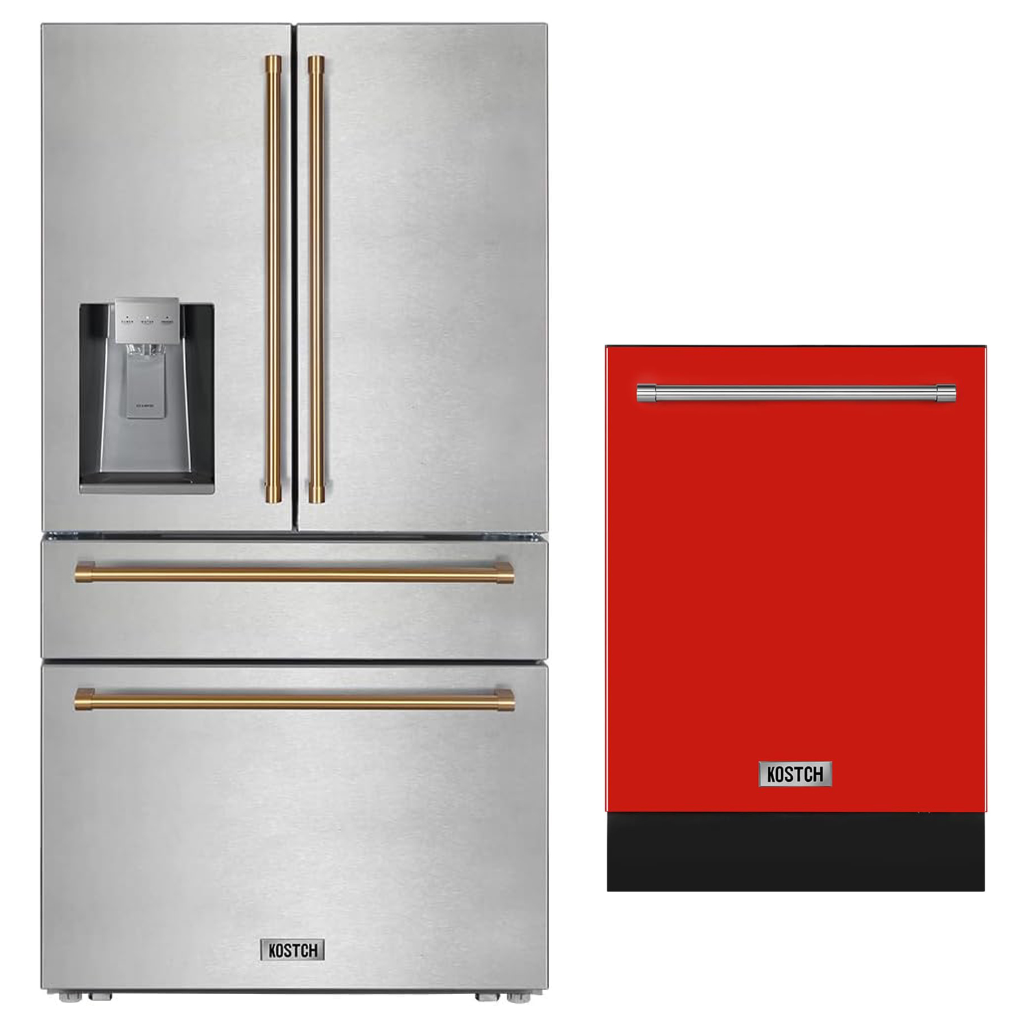 36″ French Door Refrigerator with Ice & Water Dispenser Golden Handel + 24″ Built-In Dishwasher Third Rack Sets Red