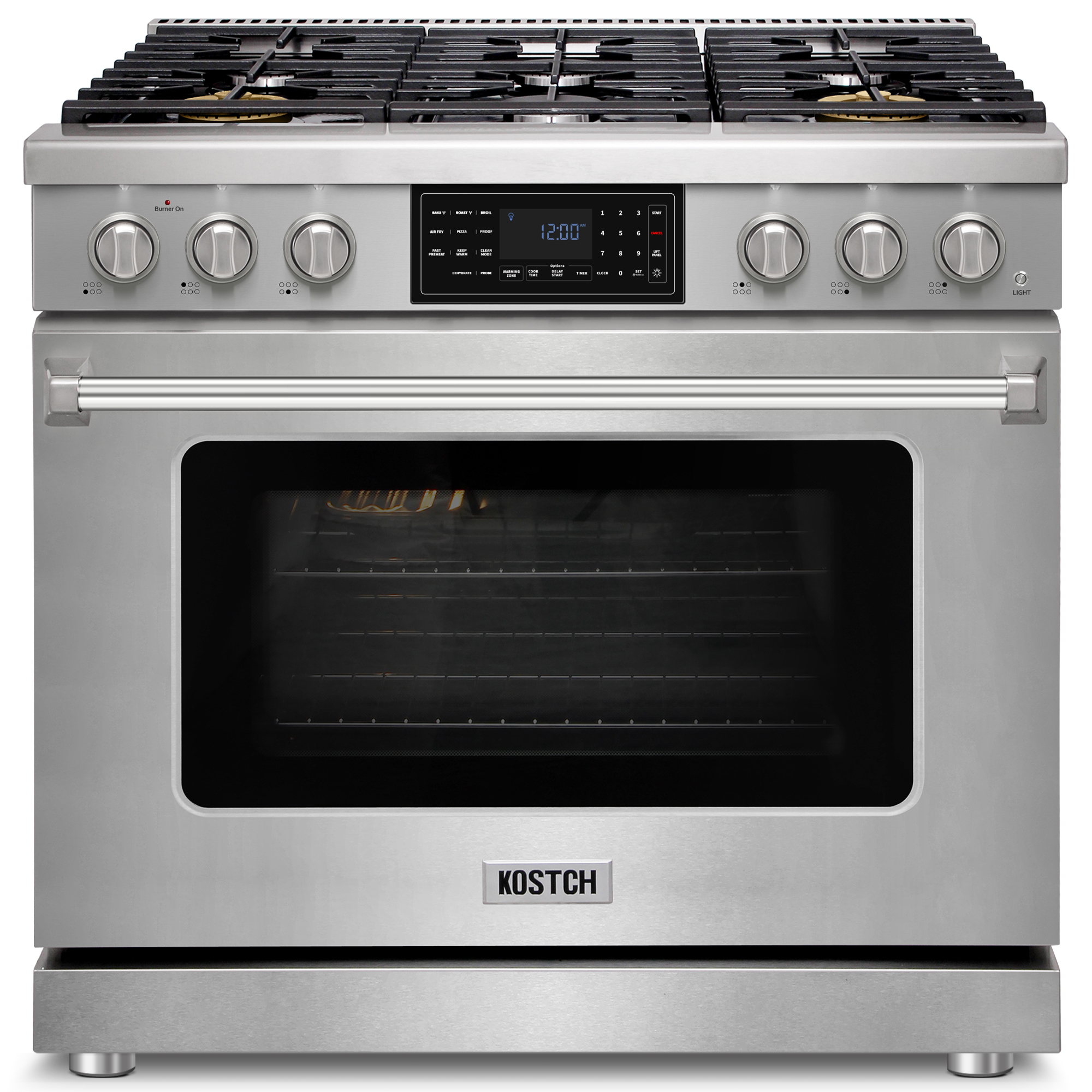 36-Inch Stainless Steel Freestanding Natural Gas Range with 6 Burners, 6.2-cu ft Convection Oven, Air Fry & Self-Cleaning, Touchscreen Display